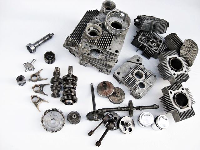 Auslage der vom Reima Twin 500cc Motor noch vorhandenen Teile